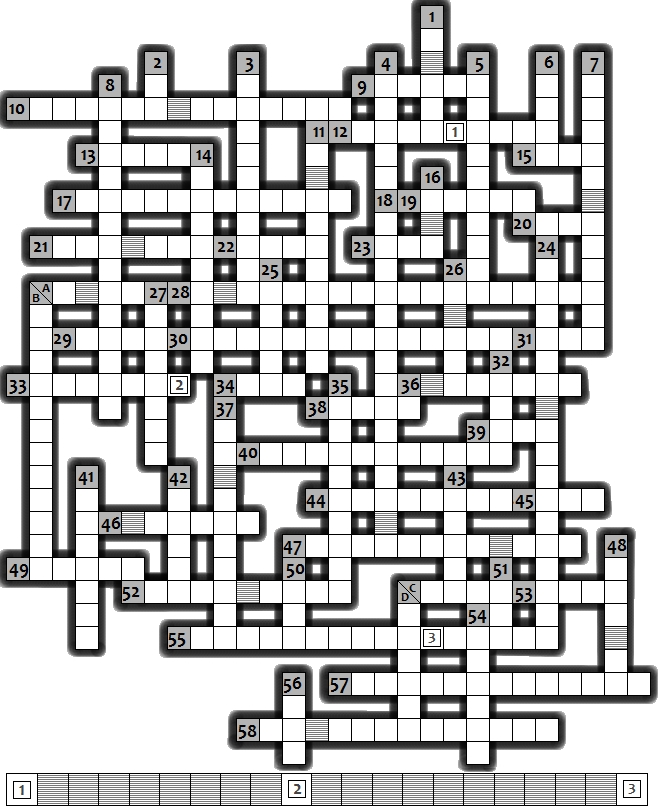 Die Teillösungen sind im Rätsel entweder von oben nach unten oder von links nach rechs einzutragen, beginnend mit dem ersten freien Feld unter oder rechts neben der entsprechenden Zahl.