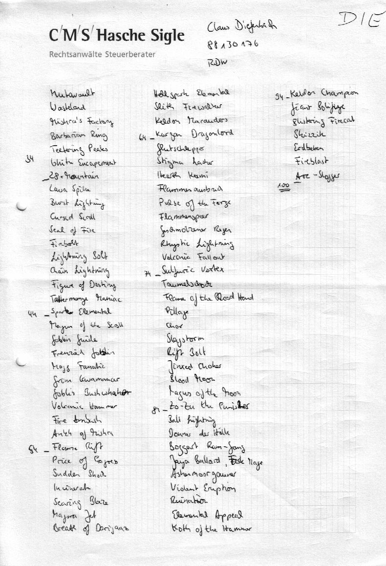 Im Gegensatz zu puristischen Kollegen trauen sich bei Jans Variante gleich fünf 4-Mana-Karten ins Deck. Ansonsten? Weniger Goblins, mehr universell gute Karten im Maindeck, vier